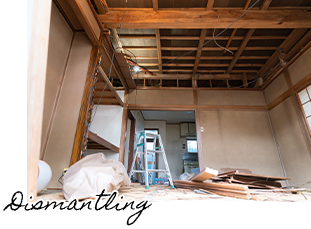 内装解体工事も対応しています。基本的にみなさんにお任せするのは塗装工事ですが、仕事のひとつとして知っておいてください。